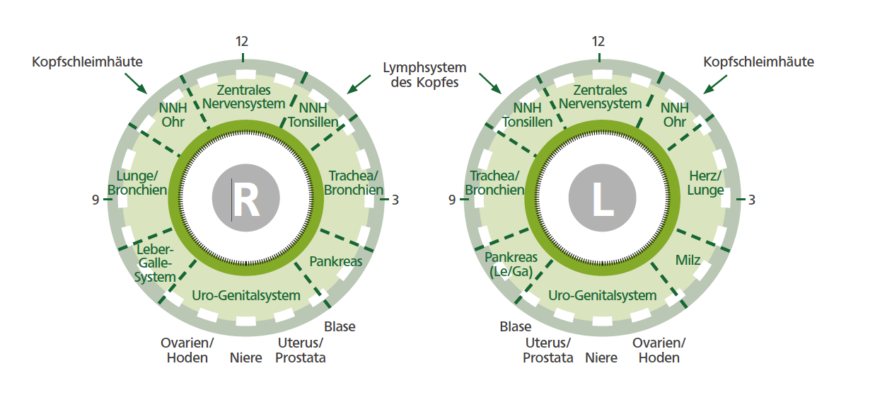 SEKTORALE TOPOGRAFIE: Zuordnung der Iris zu den Organsystemen
